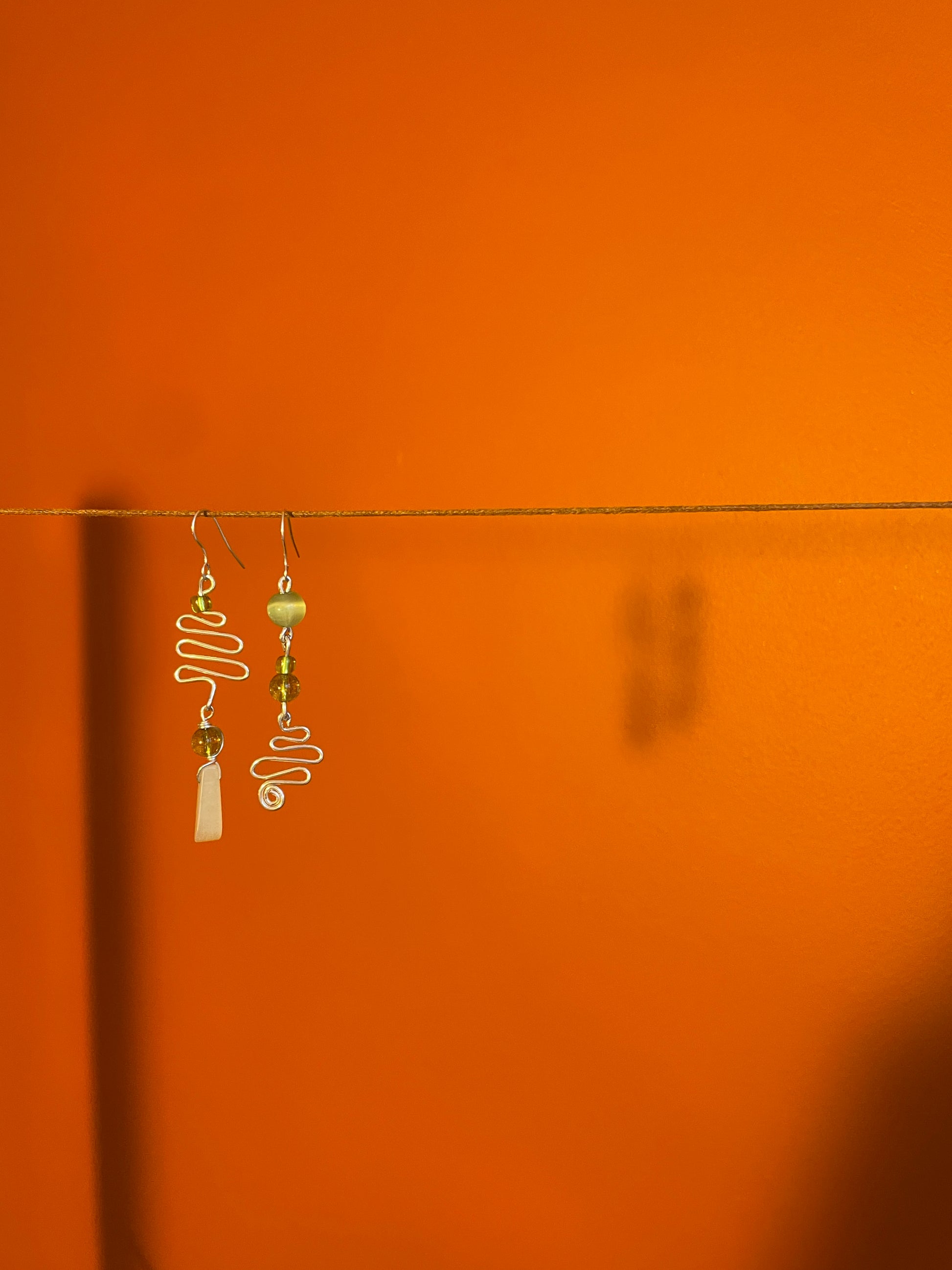 Handmade 925 sterling silver earrings with semi-precious Jade and Aventurine.