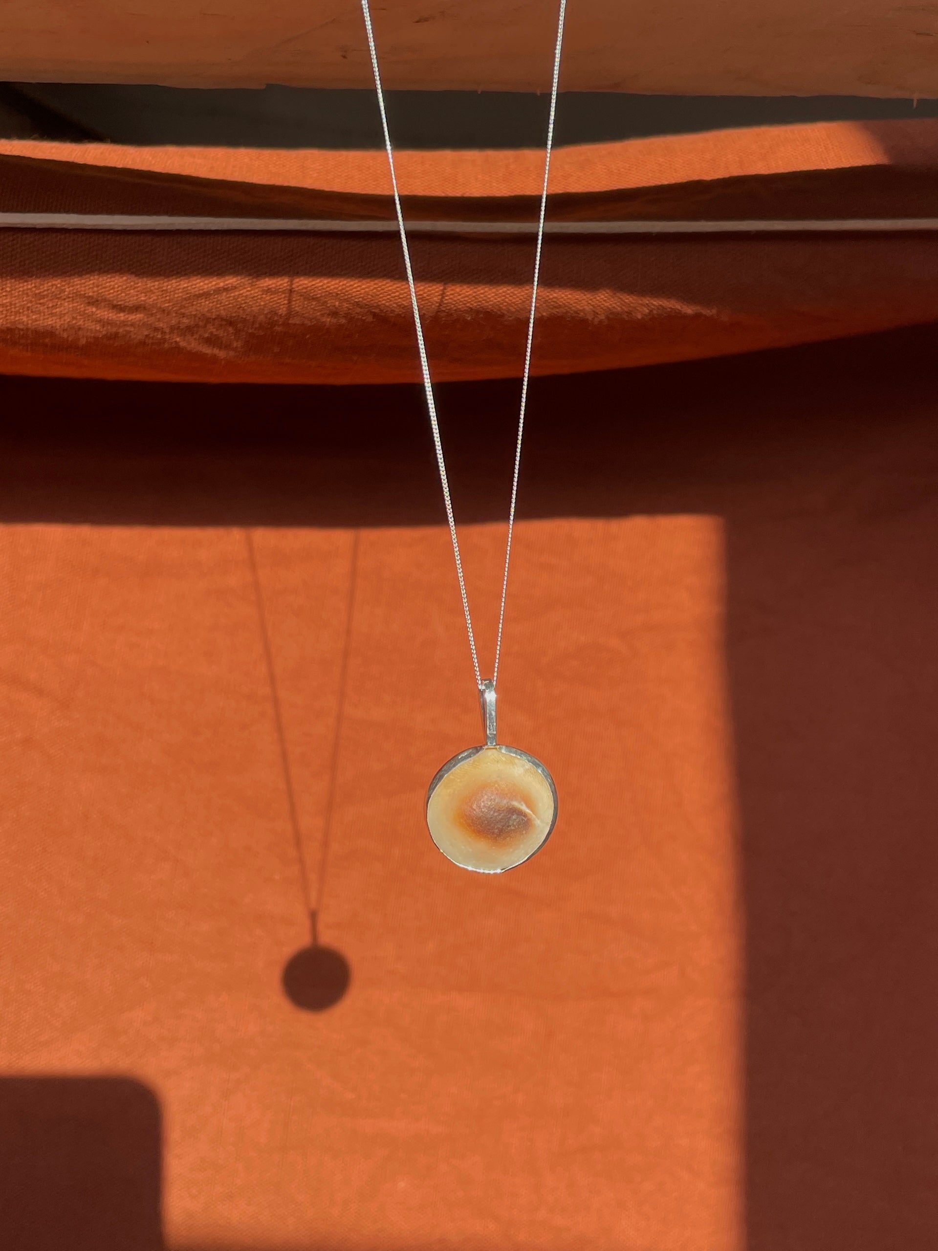 Indonesian operculum set in a handmade and reversible 925 sterling silver pendant.